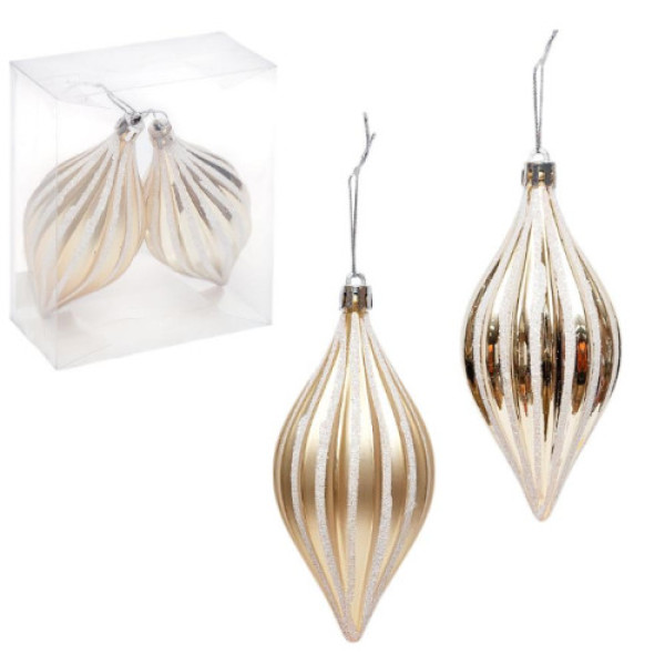 Набір ялинкових іграшок 2шт "Золото" 13*6см з глітером "біле золото"