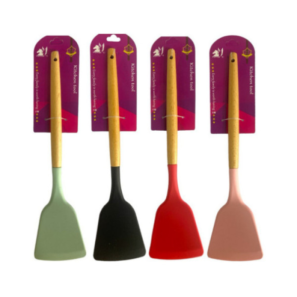 Лопатка кухонна силікон дерев'яна ручка (32*7)см