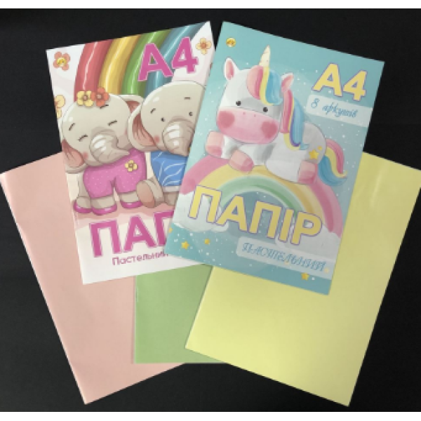 Папір кольоровий "ПАСТЕЛЬНІ КОЛЬОРИ" А4 8 кольорів