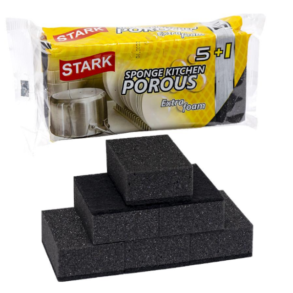 Губка для для миття посуду крупнопориста "STARK" 5 + 1шт, 9,5 * 6,5 * 3,5 см