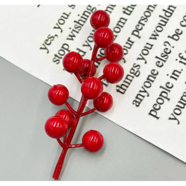 Декоративна гілочка З ягідками 11,5*1,4cм Червоний №6
