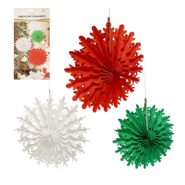 Набір підвісних паперових новорічних прикрас 3шт "Сніжинка" CG-9