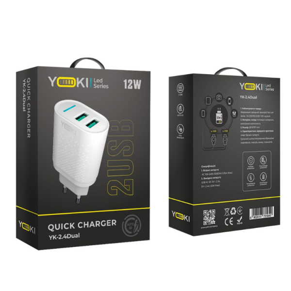 Мережевий Зарядний Пристрій Yoki Led Series YK-2.4Dual 12W (Бiлий)