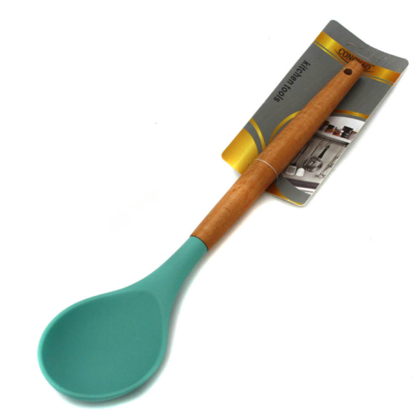 Ложка кухонна овал силікон з дерев. руч. (32*7)см (240) (35204)