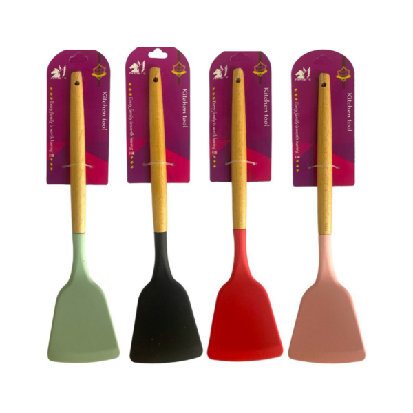 Лопатка кухонна силікон дерев'яна ручка (32*7)см