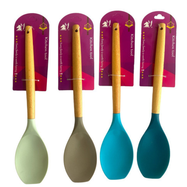 Лопатка кухонна силікон дерев'яна ручка 31,5*6,5см